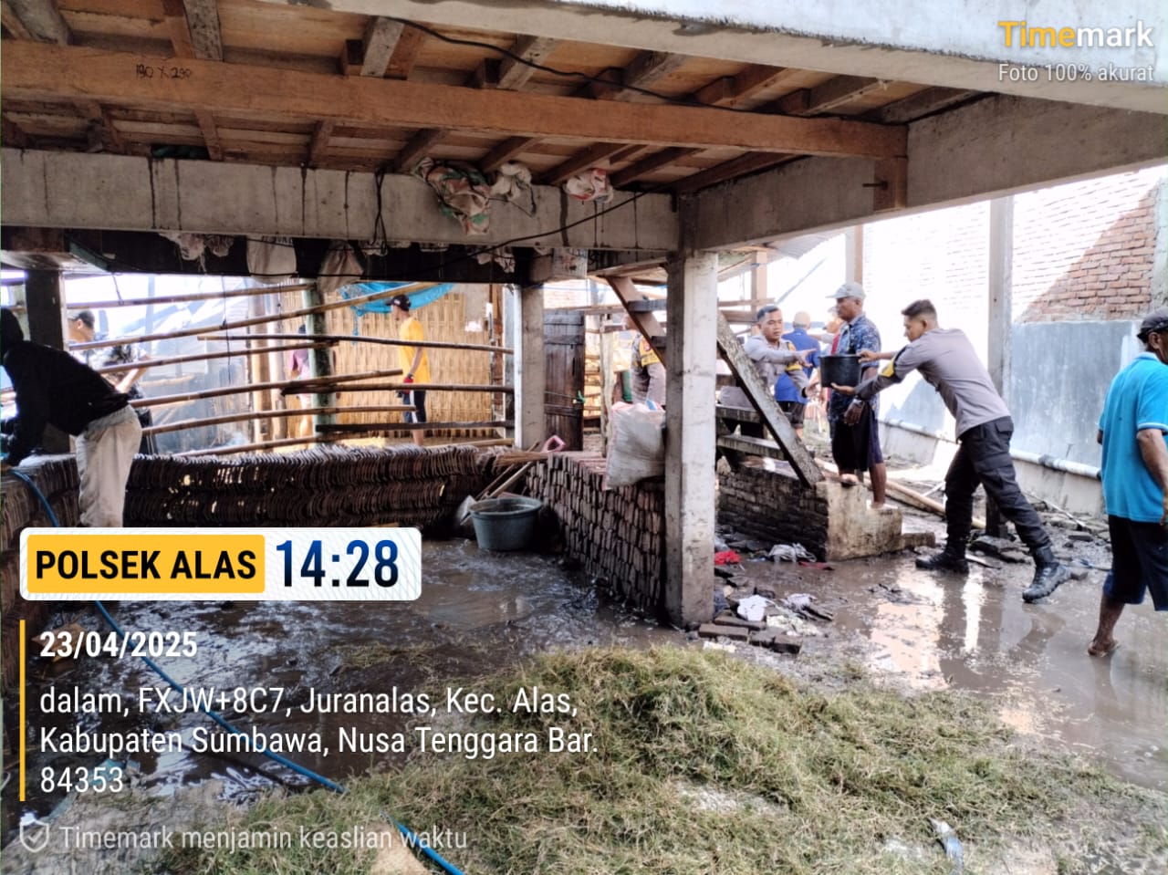 Personel Piket Polsek Alas bersama Tim Pemadam Kebakaran (Damkar) Kecamatan Alas segera menuju lokasi kejadian. Namun, upaya pemadaman sempat terkendala akibat akses jalan menuju lokasi yang sempit dan berada di dalam gang.