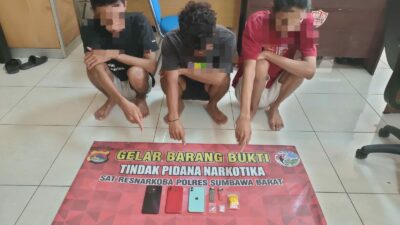 “Kami berhasil mengamankan tiga remaja yang hendak mengonsumsi sabu secara bersama-sama, beserta barang bukti narkotika jenis sabu yang akan mereka konsumsi,” ujar Kapolres Sumbawa Barat, AKBP Zulkarnain, S.I.K., melalui Kasi Humas, AKP Zainal Abidin, S.H.