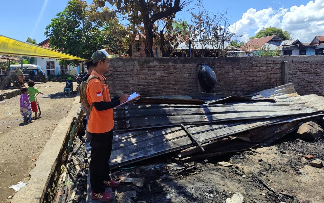 HM (P/70)Kondisi terbakar rata dengan tanah.JD, (L/56) Rumah 9 tiang Rusak parah karena sengaja dirobohkan oleh Warga agar Api tidak menjalar.