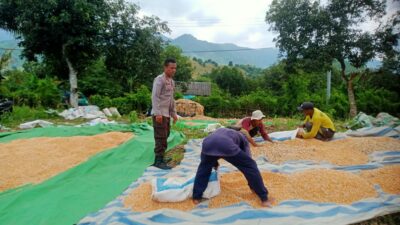 Pada 29 April 2025 pukul 11.20 Wita, Bhabinkamtibmas Desa Woko Polsek Pajo, Aipda Munawir, melaksanakan kegiatan pemantauan panen jagung milik warga binaannya, Bapak Firman, di Dusun Woko Atas, Desa Woko, Kecamatan Pajo, Kabupaten Dompu.