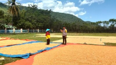 Sayangnya, kondisi jagung yang dijemur tidak maksimal akibat curah hujan yang tinggi dan serangan hama ulat, sehingga sebagian besar jagung mengalami kerusakan dan pembusukan.