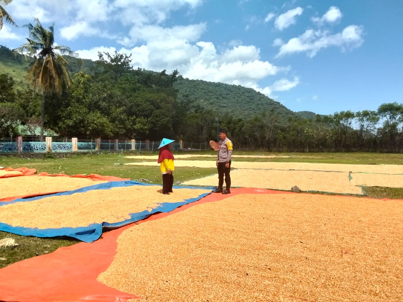 Pantau Ketahanan Pangan, Bhabinkamtibmas Desa Sawe Sambangi Warga yang Jemur Jagung