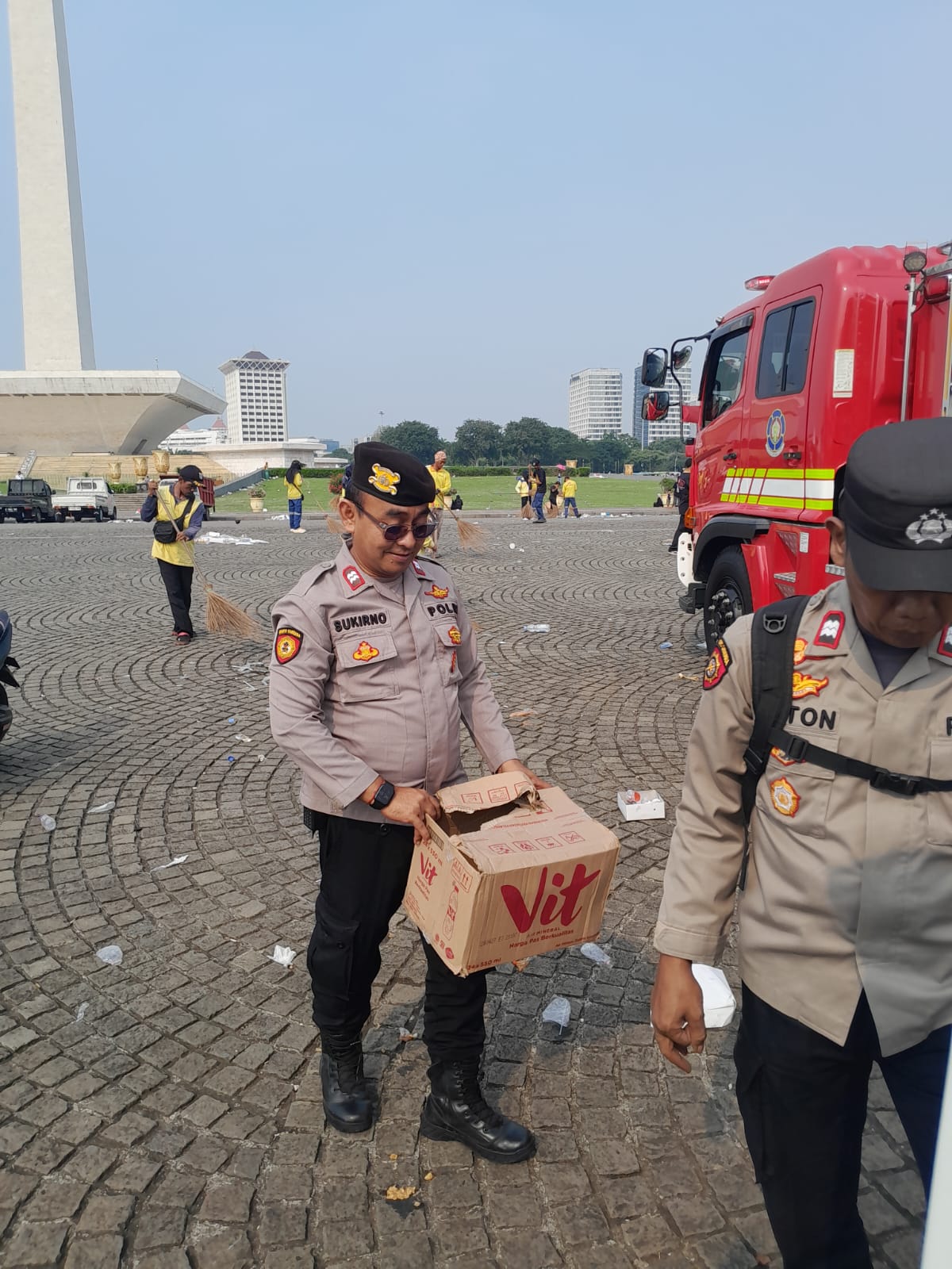 Kapolres Metro Jakarta Pusat Kombes Susatyo Purnomo Condro mengatakan personel yang terlibat dalam aksi bersih-bersih berasal dari Polda Metro Jaya hingga Polsek Tanah Abang yang bertugas melakukan pengamanan May Day Fiesta.
