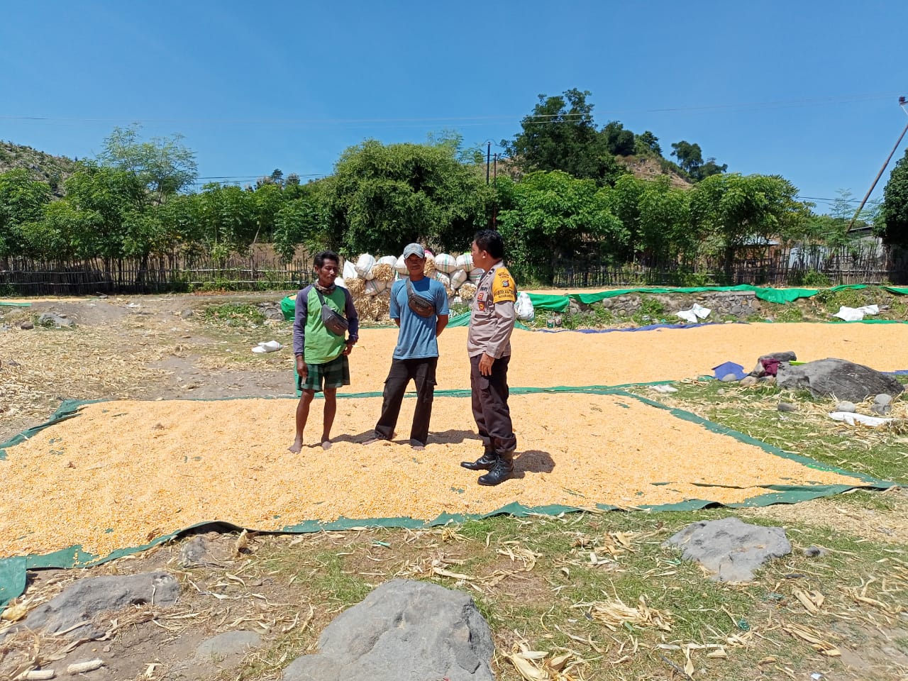 Bhabinkamtibmas Dampingi Warga Jemur Jagung Dukung Ketahanan Pangan Menuju Indonesia Emas 2045