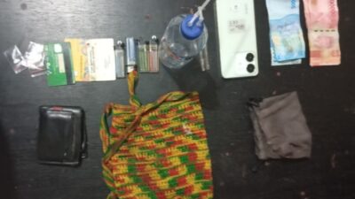 Dari lokasi kejadian, polisi mengamankan barang bukti berupa empat lembar plastik klip kosong, dua buah tabung kaca, satu dompet warna hitam, satu unit handphone Realme warna silver, empat buah korek api gas, tiga buah kartu ATM, satu tas selempang (solderbag), satu alat isap (bong) dari botol Aqua, satu kantong kain, dan uang tunai sebesar Rp500.000.