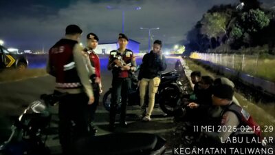 Sumbawa Barat, NTB – Dalam upaya menciptakan situasi kamtibmas yang aman dan kondusif, Unit Patroli Satuan Samapta Polres Sumbawa Barat melaksanakan patroli dialogis pada Minggu dini hari, 11 Mei 2025, sekitar pukul 00.00 WITA, di wilayah Desa Labuhan Lalar, Kecamatan Taliwang, Kabupaten Sumbawa Barat.