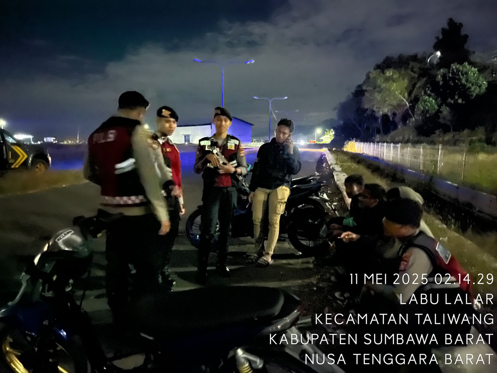 Sumbawa Barat, NTB – Dalam upaya menciptakan situasi kamtibmas yang aman dan kondusif, Unit Patroli Satuan Samapta Polres Sumbawa Barat melaksanakan patroli dialogis pada Minggu dini hari, 11 Mei 2025, sekitar pukul 00.00 WITA, di wilayah Desa Labuhan Lalar, Kecamatan Taliwang, Kabupaten Sumbawa Barat.