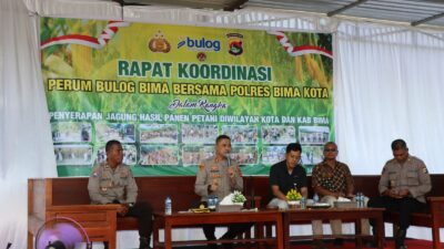 Kota Bima, NTB (16 Mei 2025) – Dalam upaya mendukung program Ketahanan Pangan Nasional 2025, Polres Bima Kota bersama Perum Bulog Cabang Bima menggelar kegiatan sosialisasi dan rapat koordinasi terkait penyerapan jagung hasil panen petani di wilayah Kota dan Kabupaten Bima. Kegiatan tersebut berlangsung pada Jumat, 16 Mei 2025, pukul 09.30 WITA, bertempat di Mako Polres Bima Kota.