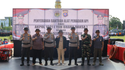 “Hari ini kita salurkan bantuan alat pemadam karhutla, terdiri dari sembilan (9) unit mesin pompa air pemadam api, empat (4) buah selang hisap, dan selang pemadam sepanjang 5.920 meter, berikut kelengkapan alat pemadam lainnya,” terang Irjen Agung.