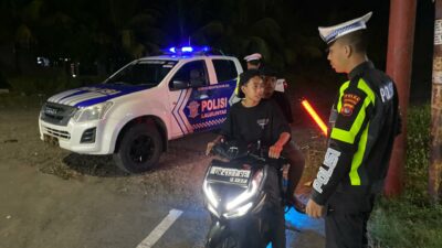 LOMBOK UTARA – Guna menjaga kamseltibcar lantas di wilayah hukum Polres Lombok Utara, Satuan Lalu Lintas (Sat Lantas) Polres Lombok Utara melakukan patroli Blue Light yang bertempat di jalur utama wilayah Kecamatan Gangga KLU, dengan memberikan imbauan kepada Pengendara untuk tertib berlalulintas Selasa malam, 20/5/2025.