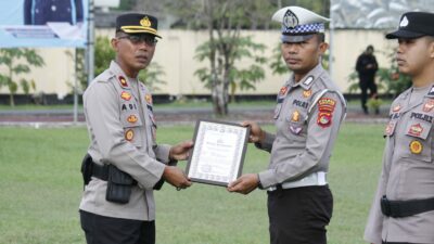 Sumbawa Barat, NTB — Kapolres Sumbawa Barat, AKBP Zulkarnain, S.I.K., memberikan penghargaan kepada tiga personel Polres Sumbawa Barat yang telah menorehkan prestasi dan membawa nama baik institusi. Penyerahan penghargaan dilakukan oleh Wakapolres, Kompol I Nyoman Adi Kurniawan, S.H., usai pelaksanaan Upacara Hari Kebangkitan Nasional pada Selasa (20/05/2025).