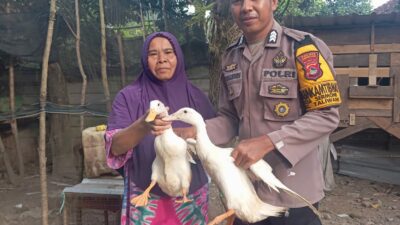 “Diharapkan dengan bantuan ini, warga dapat meningkatkan ekonomi mereka melalui hasil ternak bebek petelur, seperti telur yang dapat dijual. Bhabinkamtibmas juga memberikan motivasi dan pembinaan kepada warga terkait pemeliharaan bebek, pakan, dan pemasaran hasil ternak, sehingga warga dapat lebih produktif dalam sektor peternakan,” jelasnya.