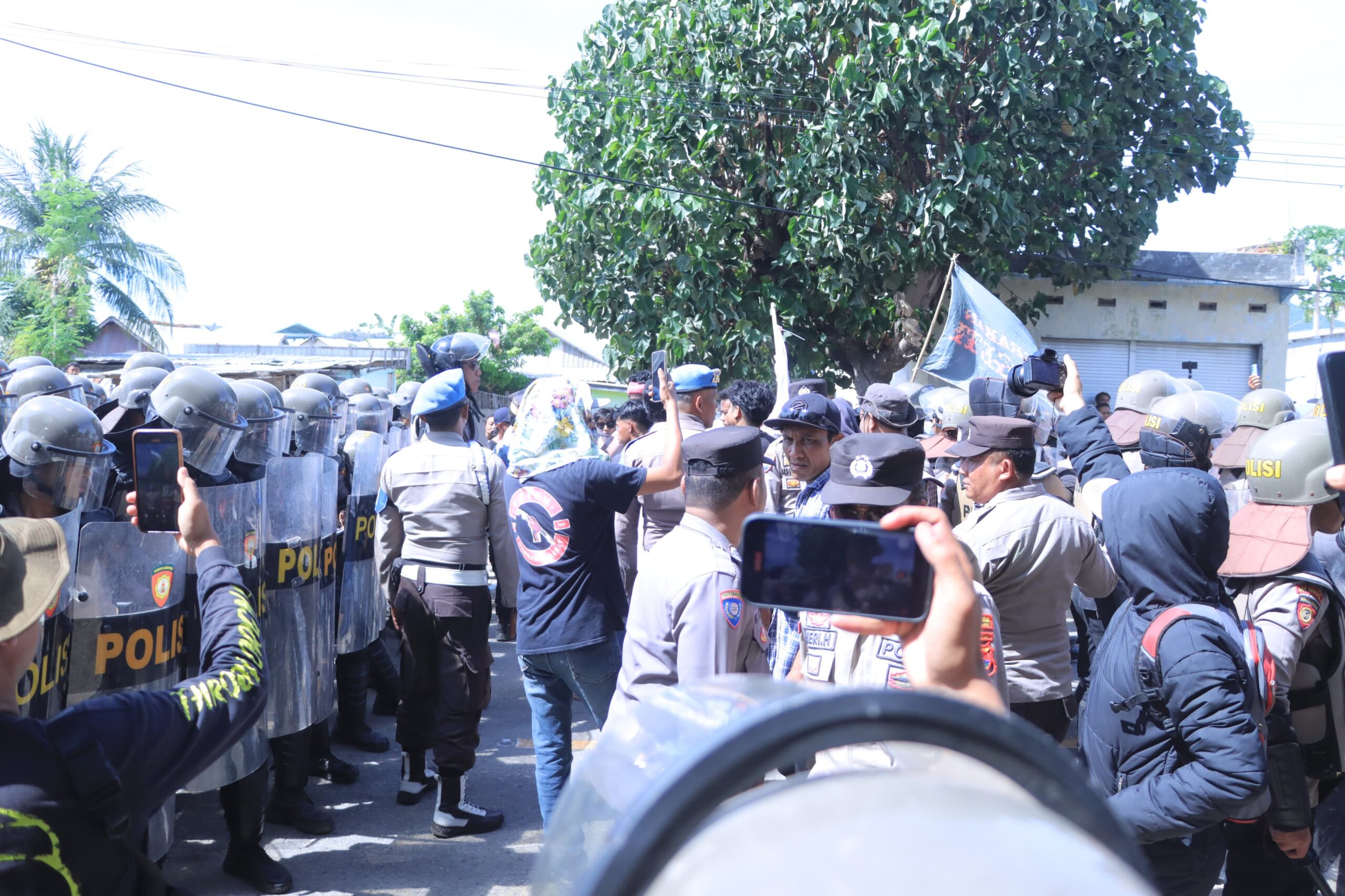 Sumbawa Barat, NTB – Polres Sumbawa Barat memberikan pengamanan ketat terhadap aksi unjuk rasa yang digelar oleh Komite Percepatan Pembentukan Provinsi Pulau Sumbawa (KP4S) di Simpang Dermaga F3, Desa Poto Tano, Kabupaten Sumbawa Barat, pada Senin (26/5). Aksi yang melibatkan sekitar 150 orang massa tersebut berjalan aman dan tertib berkat kesiapsiagaan personel Polres di lapangan.