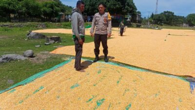 Dalam rangka mendukung Program Ketahanan Pangan Nasional menuju Indonesia Emas 2045, Bhabinkamtibmas Desa Marada Polsek Hu’u, Aipda Julkifli, melaksanakan kegiatan pemantauan terhadap aktivitas warga yang sedang melakukan penjemuran hasil panen jagung, Senin (27/5/2025) pukul 10.00 Wita di Dusun Nanga Sia, Desa Marada, Kecamatan Hu’u, Kabupaten Dompu.
