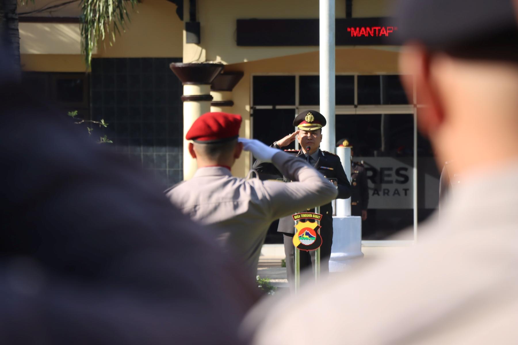 Upacara ini dipimpin langsung oleh Kapolres Lombok Barat, AKBP Yasmara Harahap, S.I.K., sebagai Inspektur Upacara. Kehadiran beliau menegaskan komitmen institusi Polri dalam menjaga dan mengamalkan nilai-nilai Pancasila sebagai dasar negara.