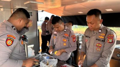 “Dapur lapangan mulai beroperasi sejak pukul 08.00 WIB. Menu yang disiapkan hari ini antara lain tongseng daging, kentang goreng, dan nasi putih,” ujar Kasi Pammat AKP Ali Hajar.