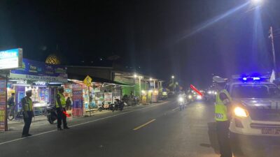 Lombok Utara – Satuan Lalu Lintas (Satlantas) Polres Lombok Utara melaksanakan patroli malam dan pengaturan arus lalu lintas dan penegakan dan penertiban lalulintas di sejumlah titik rawan di wilayah Kabupaten Lombok Utara, Sabtu malam (9/6).
