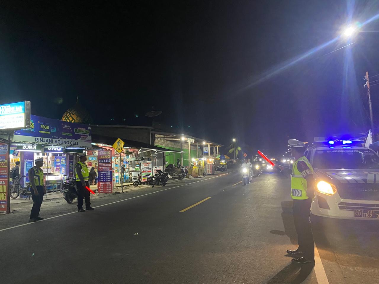 Kapolres Lombok Utara AKBP Agus Purwanta, S.I.K., melalui Kasat Lantas Polres Lombok Utara, AKP Belly Rizaldi Nata Indra, S.Tr.K., S.I.K., menyampaikan bahwa kegiatan ini merupakan bagian dari upaya menciptakan situasi lalu lintas yang tertib dan kondusif, khususnya di malam hari.