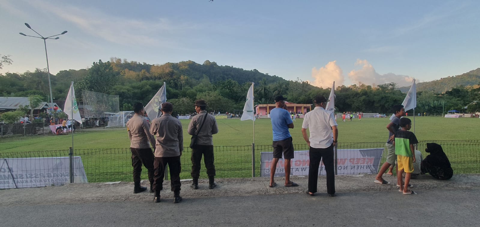 Kapolres Sumbawa Barat AKBP Zulkarnain, S.I.K., melalui Kapolsek Seteluk AKP Siswoyo, S.H., menyampaikan bahwa Polsek Seteluk mengerahkan 10 personel untuk mengamankan pertandingan yang dipadati oleh masyarakat. Pengamanan ini dilakukan guna memastikan laga berlangsung tertib dan aman.