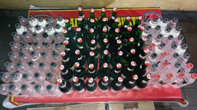 Total keseluruhan barang bukti yang berhasil diamankan sebanyak 105 botol, terdiri dari 49 botol bir Bintang dan 56 botol arak Bali.