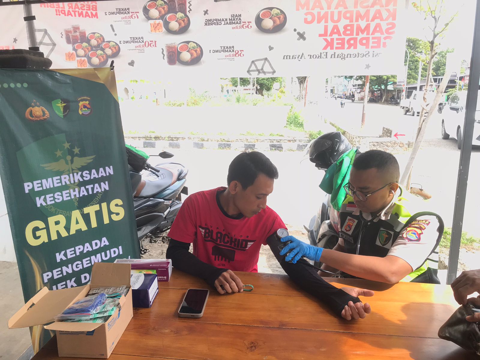 Kota Bima, NTB (13 Juni 2025) – Sebagai bentuk perhatian terhadap kesehatan masyarakat, khususnya para pekerja sektor transportasi informal, Seksi Kedokteran dan Kesehatan (Si Dokkes) Polres Bima Kota melaksanakan kegiatan pemeriksaan kesehatan gratis dan pemberian vitamin kepada para pengemudi ojek online pada Kamis, 12 Juni 2025, sekitar pukul 10.30 WITA di wilayah Kota Bima.