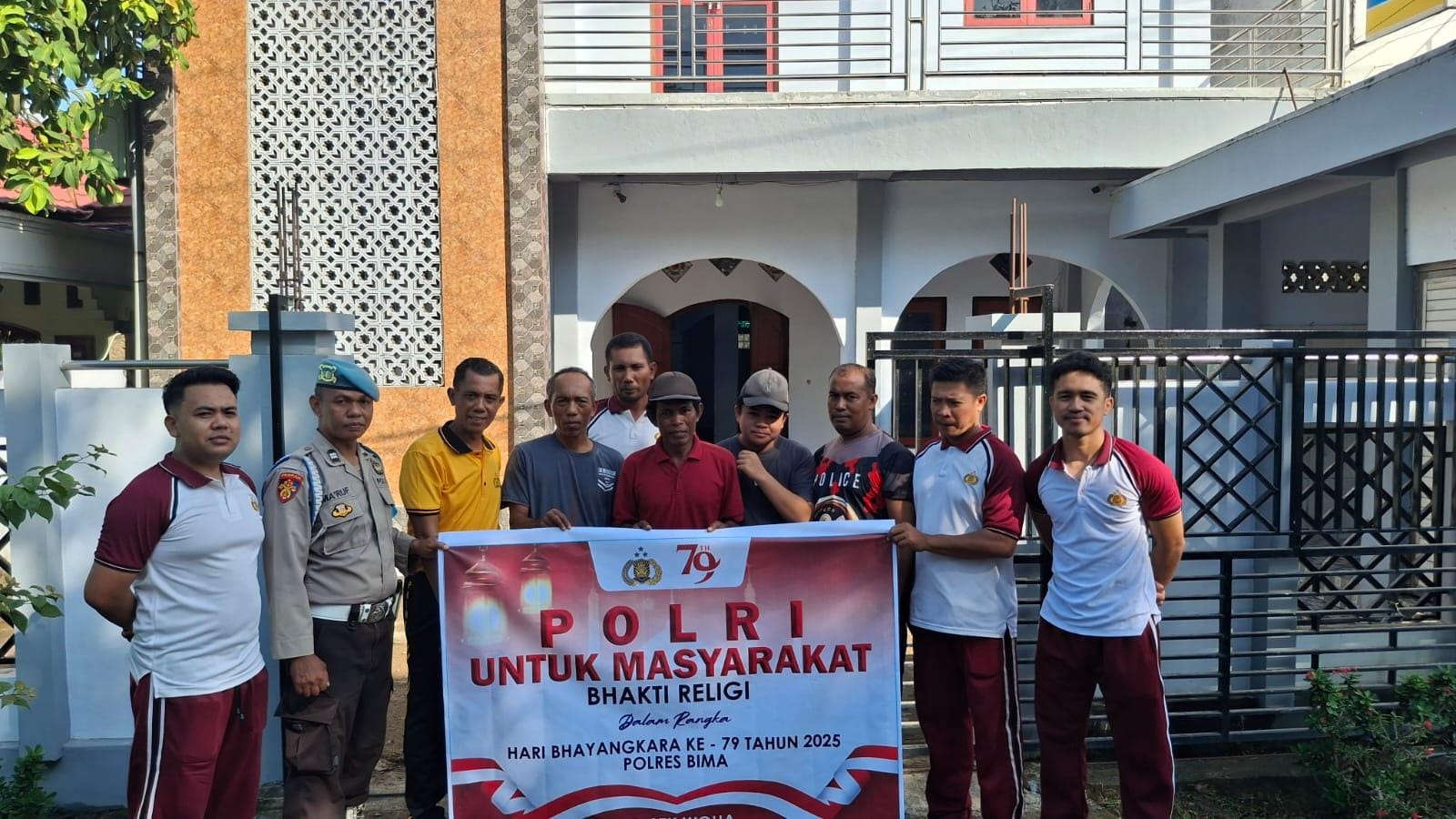 Secara terpisah Kapolres Bima AKBP Eko Sutomo S.I.K.M.I.K., melalui Kasi Humas AKP Adib Widayaka menuturkan dalam rangka menyambut HUT Ke-79 Bhayangkara Polri melaksanakan berbagai kegiatan positif kemasyarakatan seperti Bhakti Religi dan Bhakti Sosial.