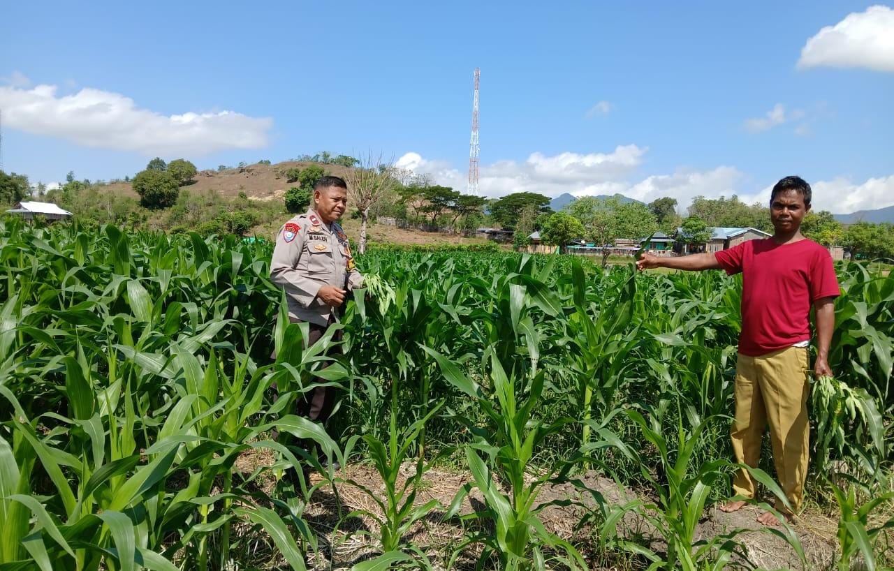 Mendukung program ketahanan pangan nasional, Bhabinkamtibmas Polsek Woha Polres Bima Polda NTB Aipda M.Saleh melaksanakan kegiatan peninjauan serta monitoring pertumbuhan jagung.