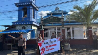 Sumbawa Besar–NTB, Dalam rangka menyambut Hari Bhayangkara ke-79 tahun 2025, personel Satuan Samapta (Sat Samapta) Polres Sumbawa menggelar kegiatan bakti religi pada Selasa, 17 Juni 2025. Acara yang dimulai pukul 09.00 WITA hingga selesai ini berpusat di Masjid Al-Muhaimin, Jalan Kebayan, Kelurahan Brang Biji, Kecamatan Sumbawa.