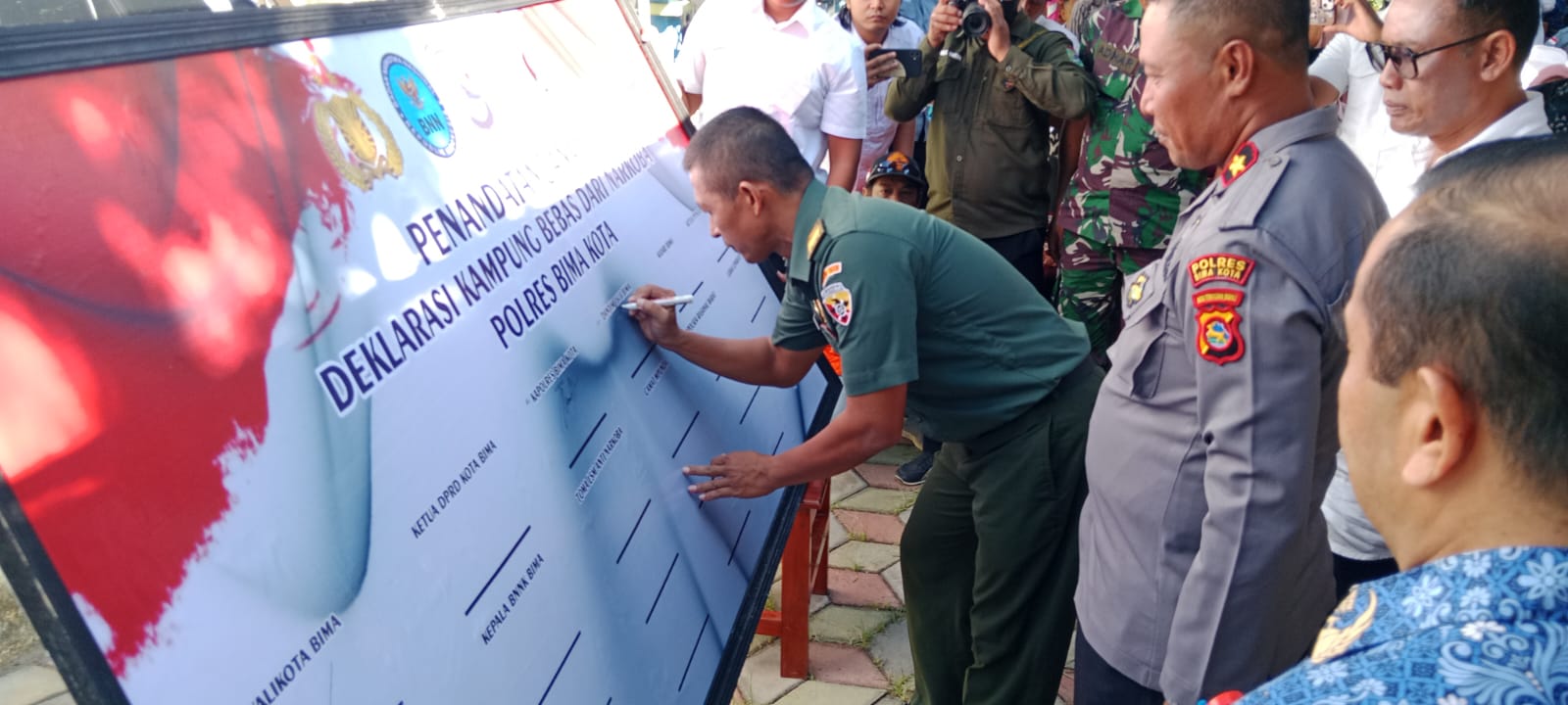 Dalam sambutannya, Wakapolres Bima Kota Kompol Herman, S.H., mewakili Kapolres Bima Kota, menegaskan bahwa deklarasi ini merupakan bagian dari komitmen bersama dalam upaya pemberantasan narkoba yang tidak hanya menjadi tanggung jawab aparat, tetapi juga seluruh elemen masyarakat.