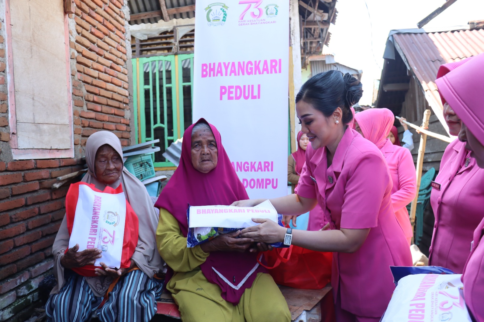 Dalam rangka memperingati Hari Kesatuan Gerak Bhayangkari ke-73 dan menyambut Hari Bhayangkara ke-79 tahun 2025, Bhayangkari Cabang Dompu melaksanakan aksi sosial bertajuk Bhayangkari Peduli dengan menyalurkan bantuan sembako kepada masyarakat yang membutuhkan.
