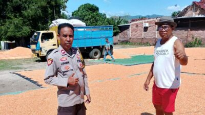 Bhabinkamtibmas Polsek Bolo Polres Bima Polda NTB Aiptu Junaidin melaksanakan peninjauan dan pemantauan pengeringan jagung warga.