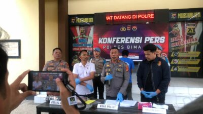 Informasi resmi ini disampaikan oleh Wakapolres Bima Kota Kompol Herman, S.H., saat menggelar konferensi pers pada Rabu sore (18/6) sekitar pukul 17.30 WITA di Mako Polres Bima Kota. Wakapolres didampingi oleh KBO Reskrim I Wayan Mariana, Kasiwas Iptu Putu Surwarjana Giri, Kanit Pidum Ipda Henry Jonathan Hutaurut, serta sejumlah pejabat utama Polres Bima Kota.