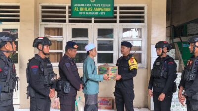 MATARAM, 20 Juni 2025 – Batalyon A Pelopor Sat Brimob Polda NTB kembali menunjukkan kepedulian sosialnya melalui kegiatan bakti sosial, kali ini dalam rangka menyambut Hari Ulang Tahun (HUT) Bhayangkara ke-79. Pada Jumat, 20 Juni 2025, personel dari Kompi 1 Brimob menyalurkan bantuan sembako ke sejumlah panti asuhan di Kota Mataram, sebuah wujud nyata semangat pengabdian kepada masyarakat.