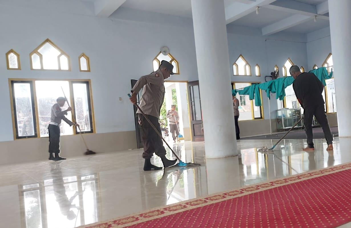 Polsek Bolo Polres Bima Polda melaksanakan kegiatan gotong royong bersama membersihkan lingkungan masjid Al-Mujahidin Desa Tumpu Kecamatan Bolo Kabupaten Bima.