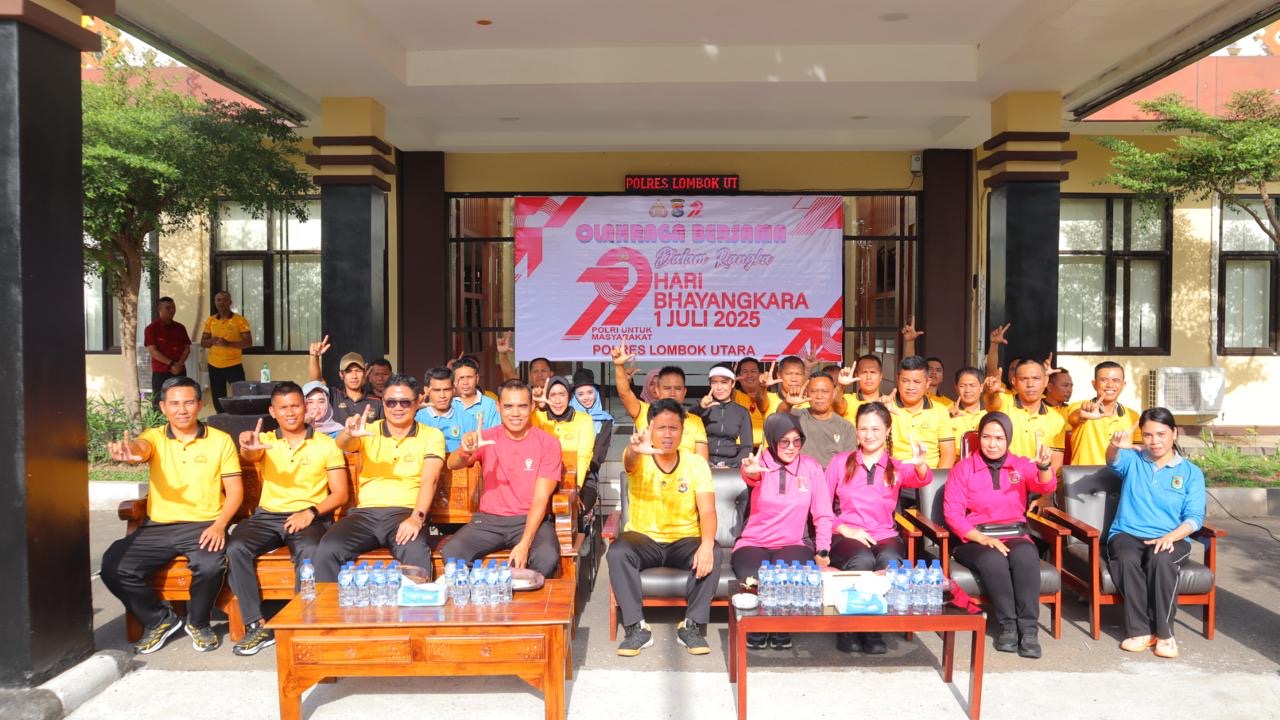 Lombok Utara – Dalam rangka menyambut Hari Bhayangkara ke-79, Polres Lombok Utara menggelar kegiatan olahraga bersama yang melibatkan unsur TNI, pemerintah daerah, dan Bhayangkari. Kegiatan ini berlangsung meriah di halaman Mapolres Lombok Utara pada Selasa pagi (24/6).