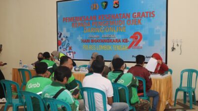 Lombok Tengah, (NTB) – Dalam rangka memperingati Hari Bhayangkara ke-79, Kepolisian Resor Lombok Tengah hari ini menyelenggarakan kegiatan pemeriksaan kesehatan gratis khusus bagi para pengemudi ojek daring dan online.