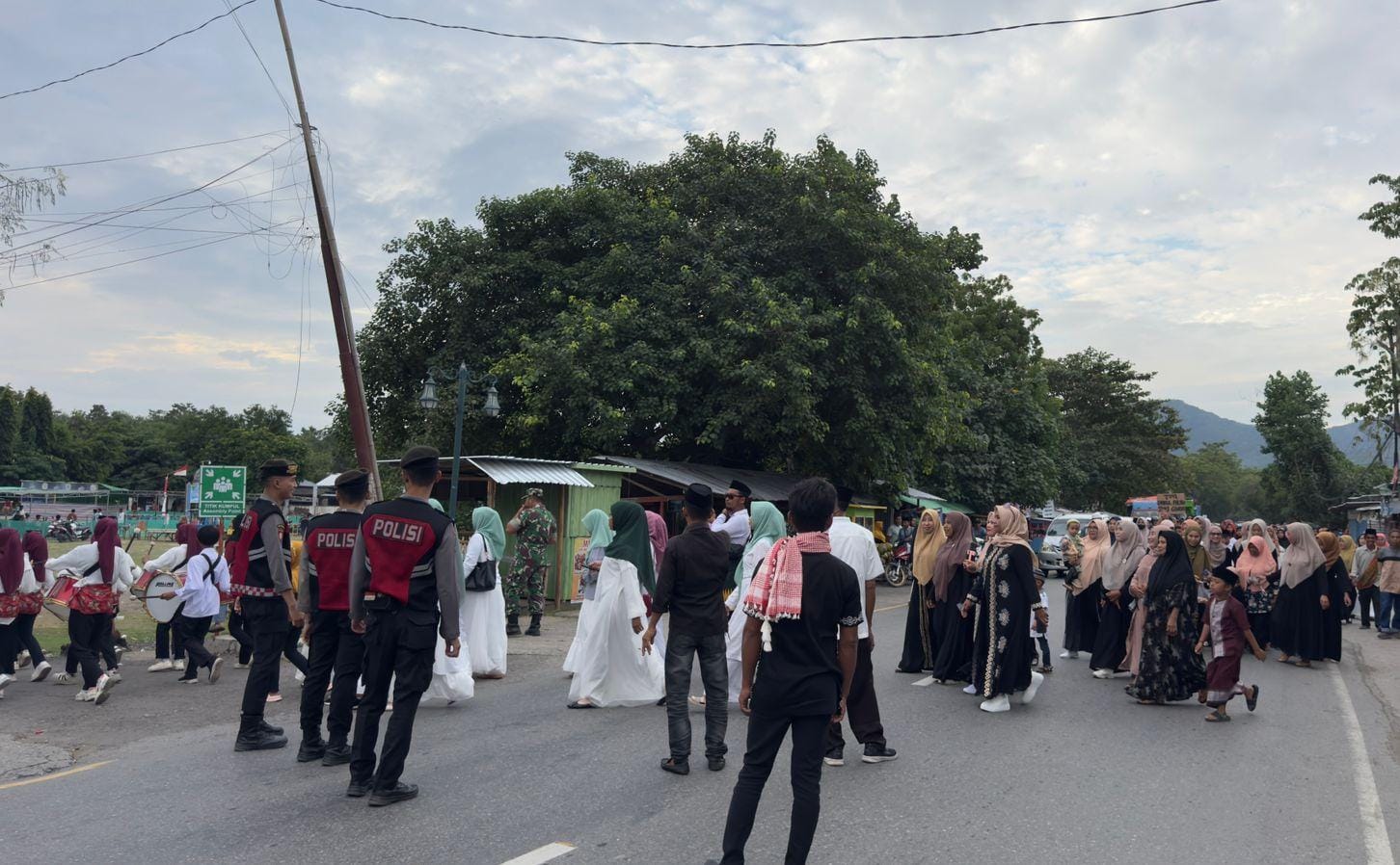 Anggota Ton 2 Dalmas Sat Samapta Polres Bima Polda NTB melaksanakan kegiatan pengamanan Pawai ta’aruf pembukaan MTQ ke 54 tingkat