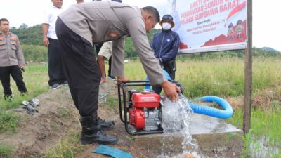 Sumbawa Barat, NTB – Dalam rangka memperingati Hari Bhayangkara ke-79 Tahun 2025, Kapolres Sumbawa Barat AKBP Zulkarnain, S.I.K. secara resmi meresmikan dan menyerahkan bantuan sumur bor kepada dua kelompok tani di Desa Beru, Kecamatan Jereweh, Kabupaten Sumbawa Barat. Kegiatan berlangsung pada hari Rabu, 25 Juni 2025 pukul 10.30 WITA, bertempat di areal persawahan Desa Beru.