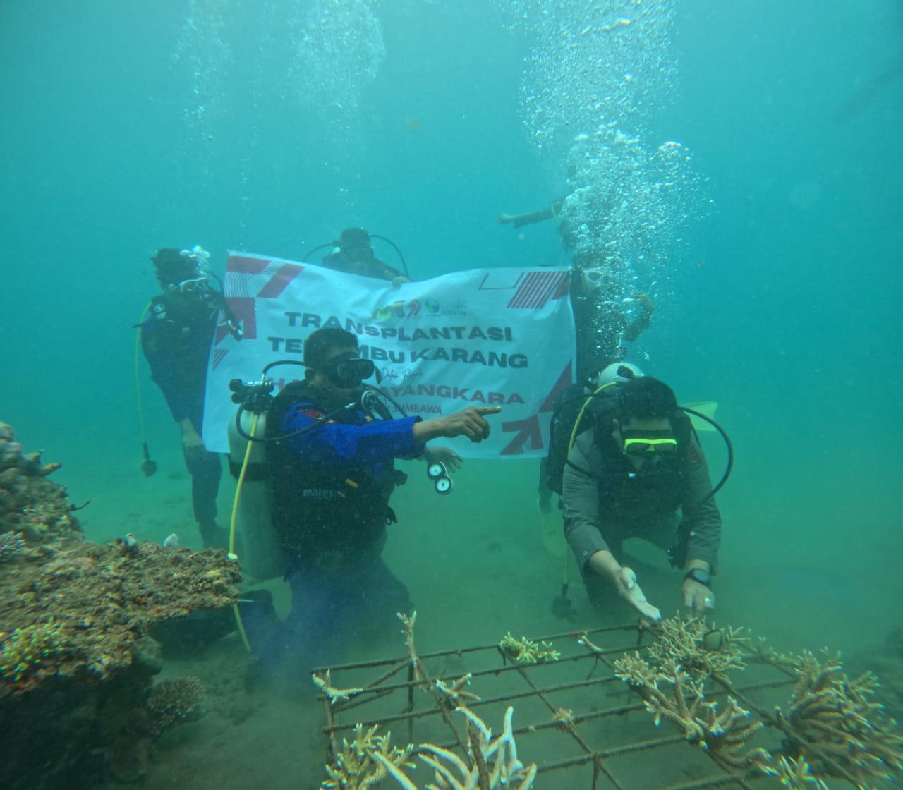 Transplantasi terumbu karang merupakan salah satu upaya pelestarian lingkungan bawah laut yang vital. Kapolres Sumbawa AKBP Bagus Nyoman Gede Junaedi, S.H.,S.I.K.,M.A.P, menyampaikan bahwa kegiatan ini adalah bentuk komitmen Polri, khususnya Polres Sumbawa, dalam menjaga kelestarian ekosistem laut.