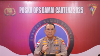 Kaops Damai Cartenz, Brigjen Pol. Dr. Faizal Ramadhani, S.Sos., S.I.K., M.H., didampingi Wakaops Damai Cartenz, S.I.K., M.Hum., menyampaikan bahwa aparat akan mengambil langkah tegas terhadap pelaku sesuai dengan hukum yang berlaku.