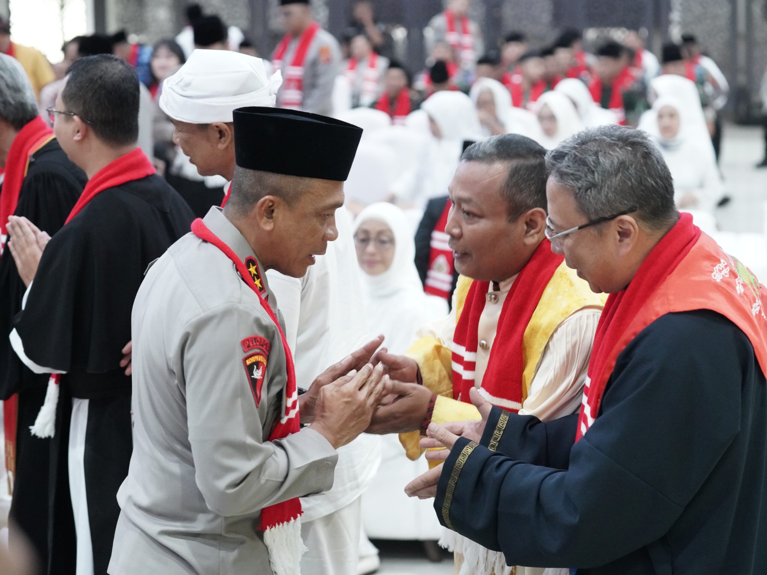 Polda Jawa Barat menggelar doa lintas agama sebagai bagian dari rangkaian peringatan Hari Ulang Tahun (HUT) Bhayangkara ke-79. Kegiatan ini dilaksanakan dengan penuh khidmat dan dihadiri oleh tamu undangan baik dari jajaran TNI, Forkopimda, dan instansi lain serta dihadiri berbagai tokoh agama serta jajaran kepolisian, sebagai wujud persatuan dan harmoni dalam mendukung tema HUT tahun ini, yaitu “Polri Presisi Mendukung Percepatan Transformasi Ekonomi yang Inklusif dan Berkelanjutan Menuju Indonesia Emas.”