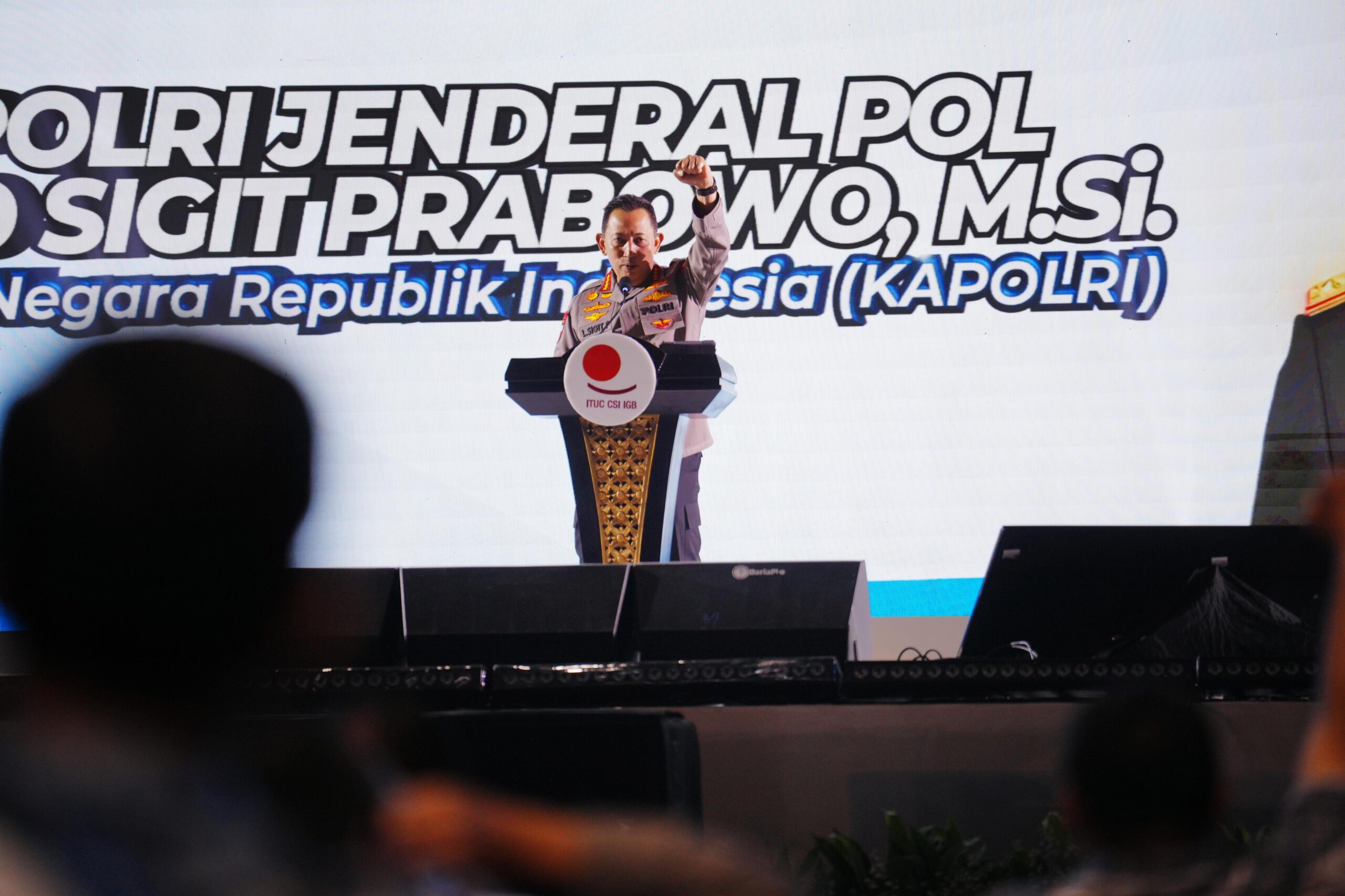 “Dan tentunya ini akan memperkuat komitmen kita bersama khususnya Polri dalam memberikan pelindungan dan meningkatkan kesejahteraan hidup rekan-rekan buruh sekalian,” kata Sigit.
