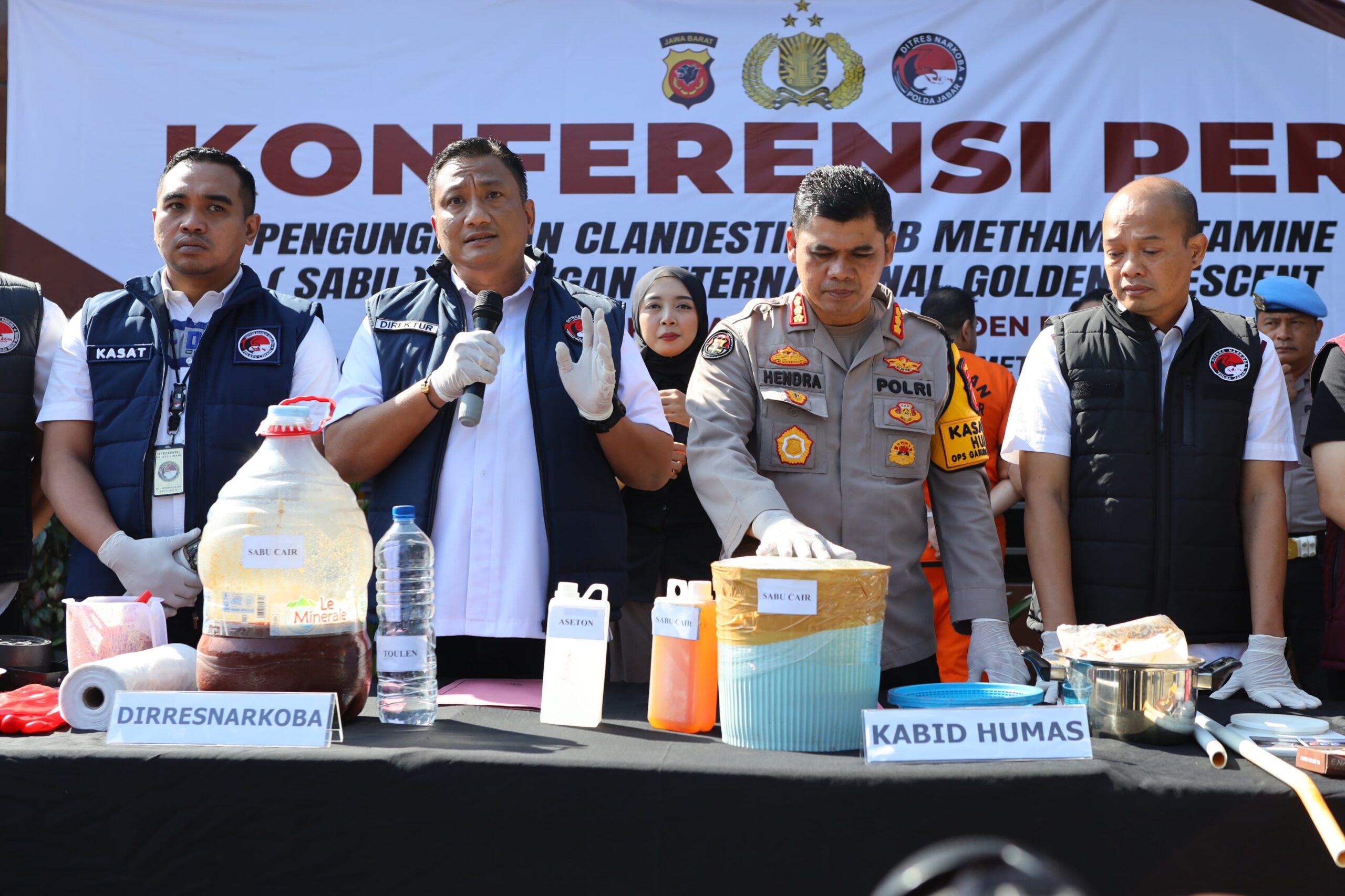Jabar. Ditresnarkoba Polda Jawa Barat (Jabar) bersama Polres Jakarta Barat berhasil mengungkap laboratorium pembuatan narkoba jenis sabu di wilayah Meruya Selatan, Jakarta Barat.