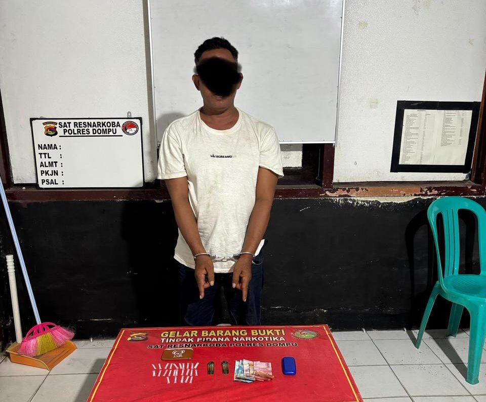 Tim Opsnal Satresnarkoba Polres Dompu kembali menunjukkan ketegasan dalam memberantas peredaran narkotika. Pada Rabu malam, sekitar pukul 19.00 WITA, seorang pria berinisial MI (48 tahun), warga Dusun Lara, Desa Nanga Tumpu, Kecamatan Manggelewa, dibekuk di kediamannya dengan barang bukti yang diduga sabu-sabu.