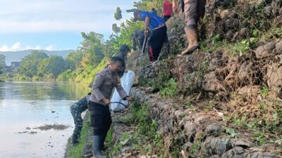 Bhabinkamtibmas Kelurahan Dalam Bersama Warga Gelar Gotong Royong di Bantaran Sungai Sebok