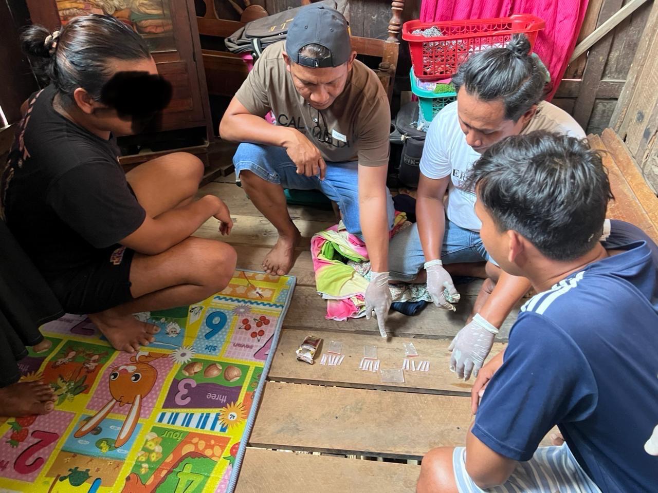 Di dalam rumah tersebut, tim mendapati tiga orang terduga pelaku yang sedang berkegiatan dengan narkotika jenis sabu. Mereka adalah: