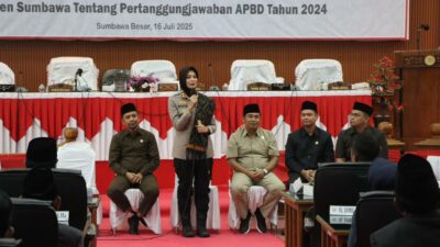 Sumbawa Besar, NTB — Dewan Perwakilan Rakyat Daerah (DPRD) Kabupaten Sumbawa menggelar Rapat Paripurna ke-III dengan agenda Penyampaian Jawaban dan/atau Tanggapan Bupati atas Pandangan Umum Fraksi-fraksi DPRD Kabupaten Sumbawa terhadap Rancangan Peraturan Daerah tentang Pertanggungjawaban Pelaksanaan APBD Tahun 2024. Kegiatan berlangsung di Ruang Sidang Utama Lantai II Gedung DPRD Kabupaten Sumbawa pada hari Rabu (16/7/2025) mulai pukul 10.00 WITA hingga selesai.
