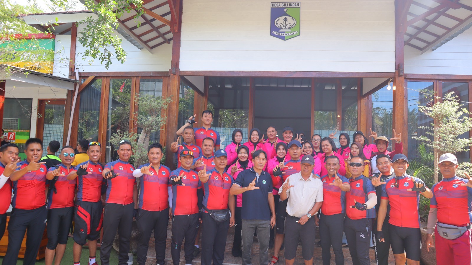 Setelah penyerahan bantuan, kegiatan dilanjutkan dengan *gowes* mengelilingi pulau Gili Air, yang sekaligus menjadi sarana untuk menyapa masyarakat secara langsung. Rombongan kemudian menuju kantor Desa Gili Indah untuk melanjutkan rangkaian kegiatan.