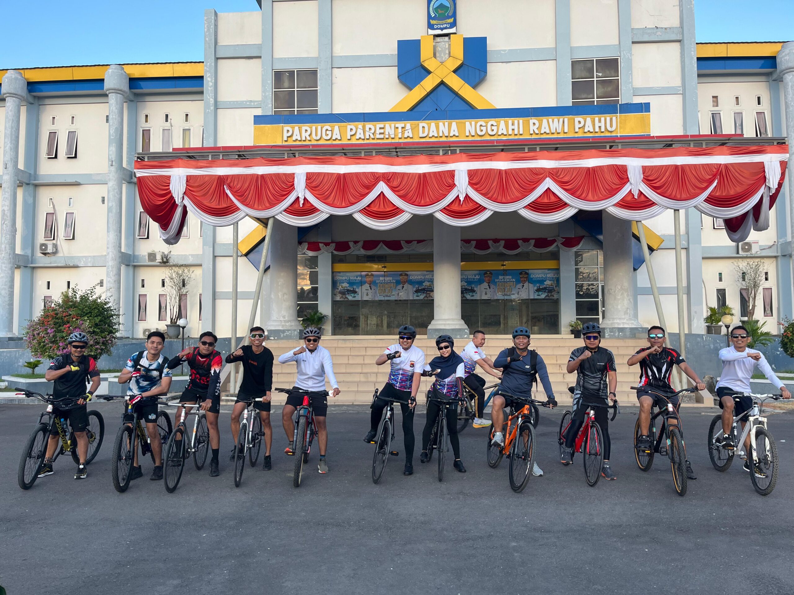 Dompu, NTB (20 Juli 2025) – Dalam rangka memeriahkan Festival Lakey Beach 2025, Kapolres Bima Kota AKBP Didik Putra Kuncoro, S.I.K., M.Si turut serta dalam kegiatan Gowes Bersama Forkopimda (FKPD) Kota Bima, Kabupaten Bima, dan Kabupaten Dompu, Sabtu pagi (19/7/2025), dengan rute start dari Kantor Bupati Dompu dan finish di Pantai Lakey, Kecamatan Hu’u, Kabupaten Dompu, NTB.