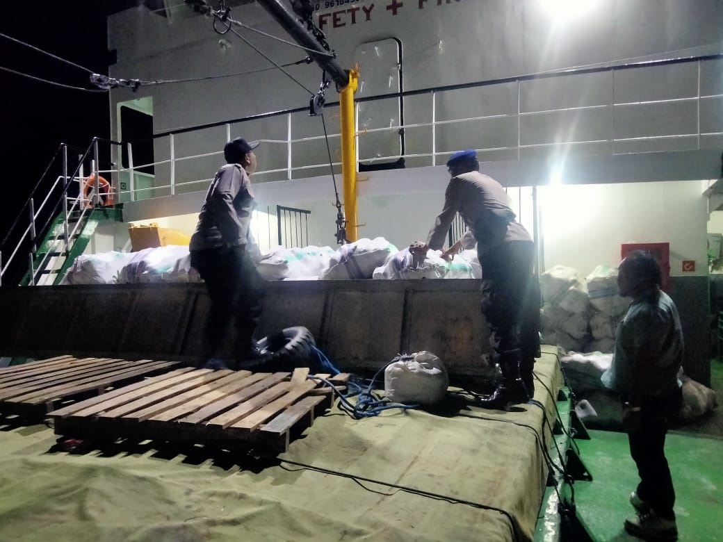 Kegiatan yang berlangsung pada Minggu dini hari, 20 Juli 2025, pukul 02.45 WITA ini dilaksanakan tepat saat kapal Sabuk Nusantara 27 tiba dan bersandar di Pelabuhan Bima.